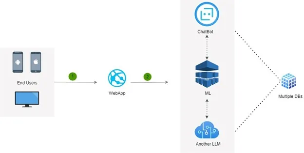 - User interaction: A frontend application collects inputs such as text, images, or files.