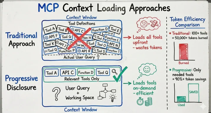 Figure 3: Context Loading Approaches - Traditional vs Progressive Disclosure